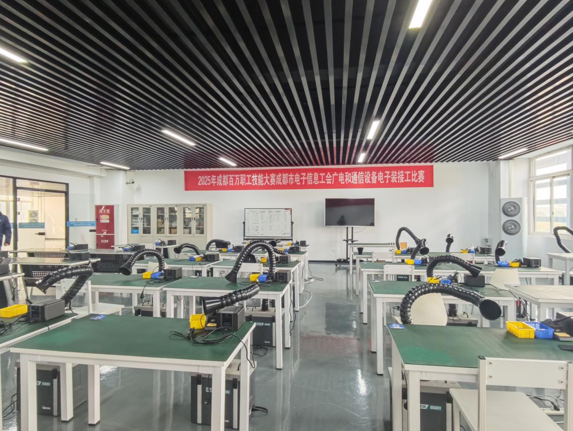 电子精密焊接实训中心紧密围绕电子制造产业高集成、高精密化发展需求,以培养扎实、高素质的精密焊接技术技能人才为核心目标,配备了行业领先的实训设备和系统化的教学资源。实训室设置48套实训工位,配备48台行业主流焊台及配套多规格焊头,24台净化吸烟机、一台球型键合机、一台楔型键合机、一台集成电路推拉力测试机,全面覆盖电子精密焊接的基础训练与进阶实践需求。设备技术参数先进。同时,深度推进产教融合育人模式,构建了完整的精密焊接人才培养体系,配套有完善的教学资源,包括标准化的人才培养方案、阶梯式实训课程计划、配套课件资源及技术标准库等。可满足电子制造相关专业学生的实践教学、技能训练需求,助力学生系统掌握电子装接工艺、精密焊接技术、质量检测等核心技能,对接电子设备装调工、电子设备装接工、智能硬件装调员等岗位要求,充分满足新产业形态下电子制造领域的高素质技术技能人才需求。